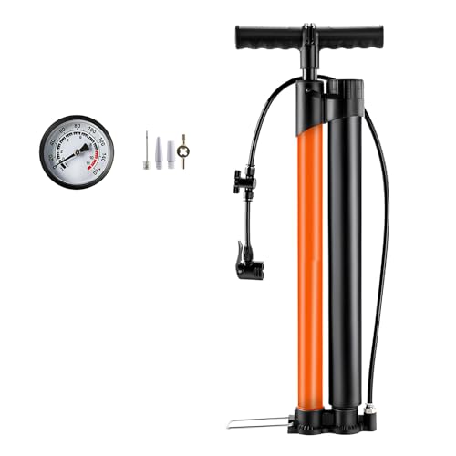 Hycline Bike Pump, Bicycle Floor Pump for Bike Tyre, 150 PSI High Pressure Bike Pumps with Presta and Schrader Valve for Road Bike Tyres, Balls, Balloons, Air Cushion, Orange