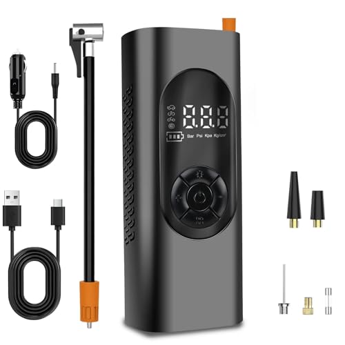 Tire Air Pump - 5.12 Inch 150PSI Cordless Electric Compressor | Digital Pressure Gauge Pump, Electric Bike Pumps with Digital Tire Pressure Gauge for Car, Sedan, Bike, Motorcycle, Sports Balls, and In