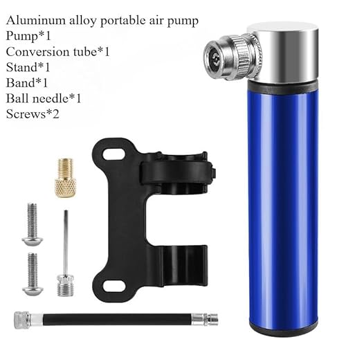 Mini Air Pump for and Basketball, Portable High Pressure Aluminum Alloy Pump with Ball Needle, 120PSI, 9.5 cm, Compatible with Road for Bike, Sports Balls, Includes Conversion Tube and Stand Blue