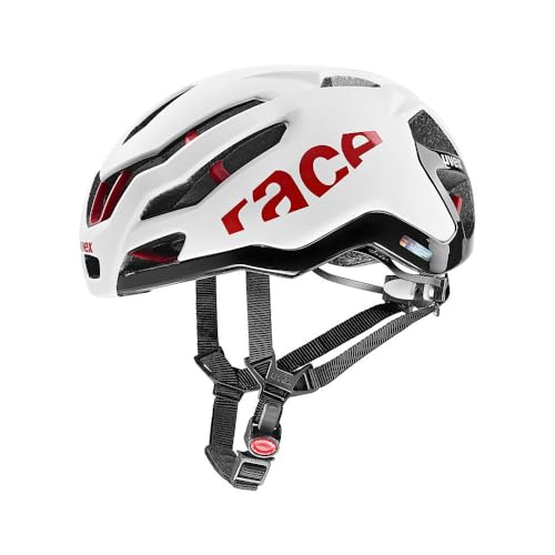uvex Race 9 - Extremely Lightweight Performance Bike Helmet for Men & Women - Aerodynamic Ventilation - Optimized Ventilation - White - Red Matt - 53-57 cm