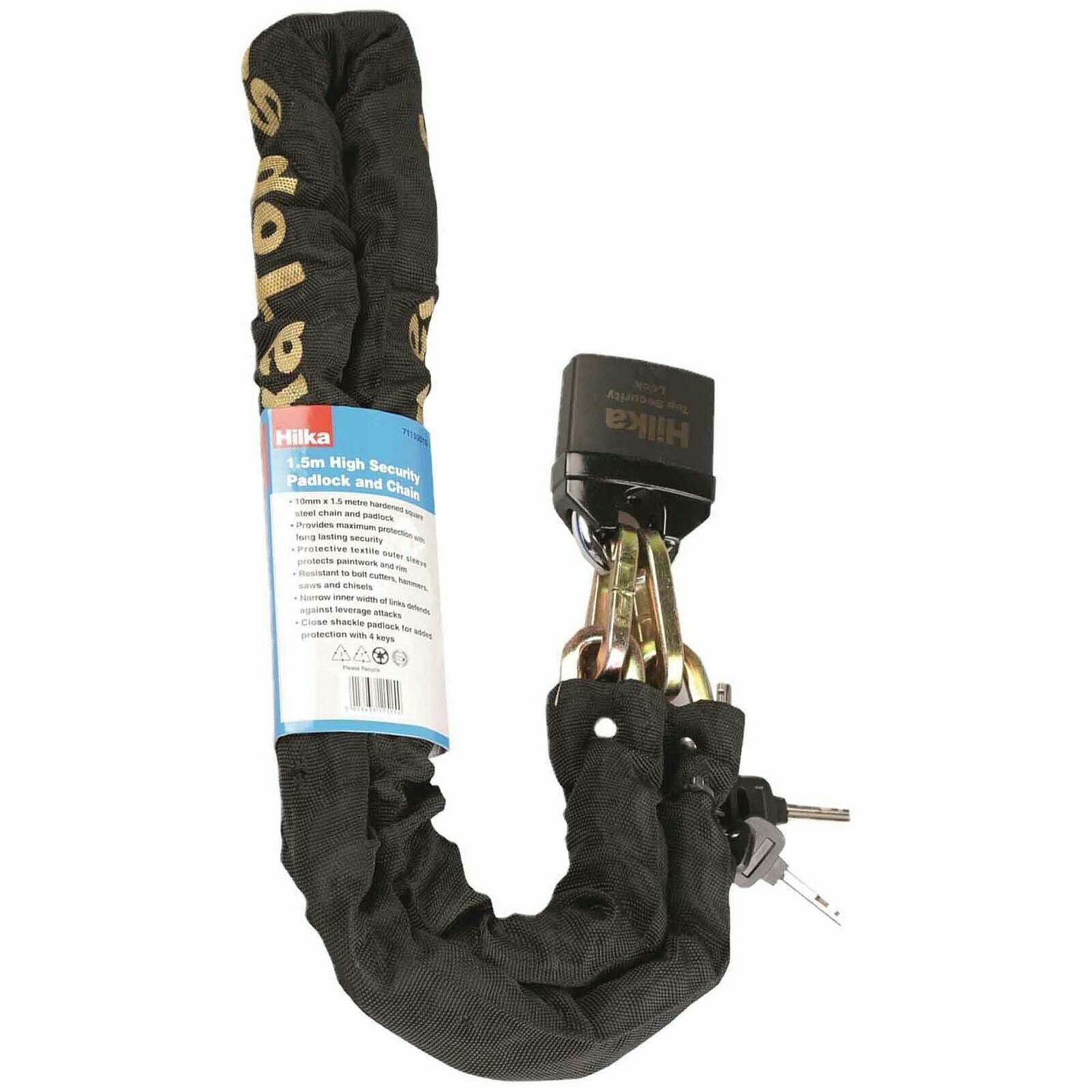 Heavy Duty Chain 1100mm x 10mm & Padlock Lock Up Bike Garage Security Locks