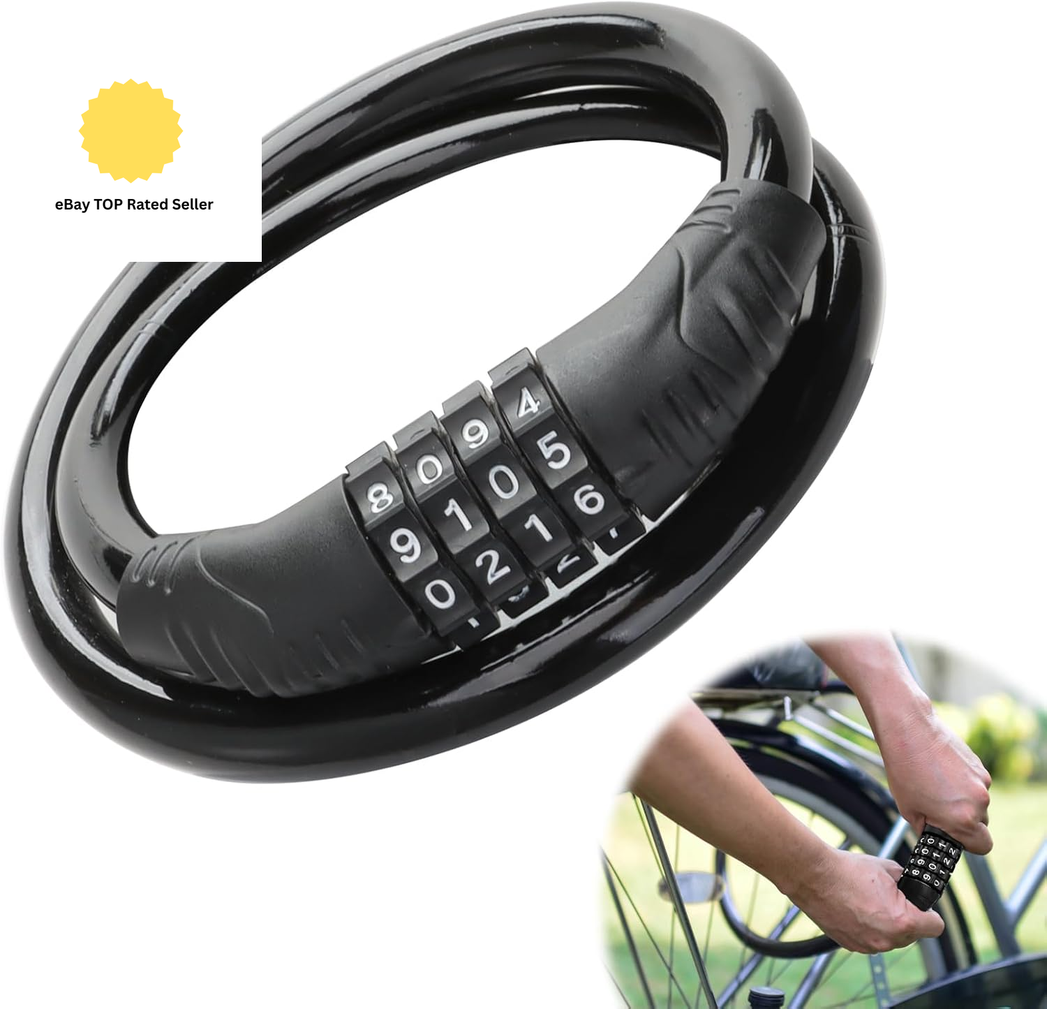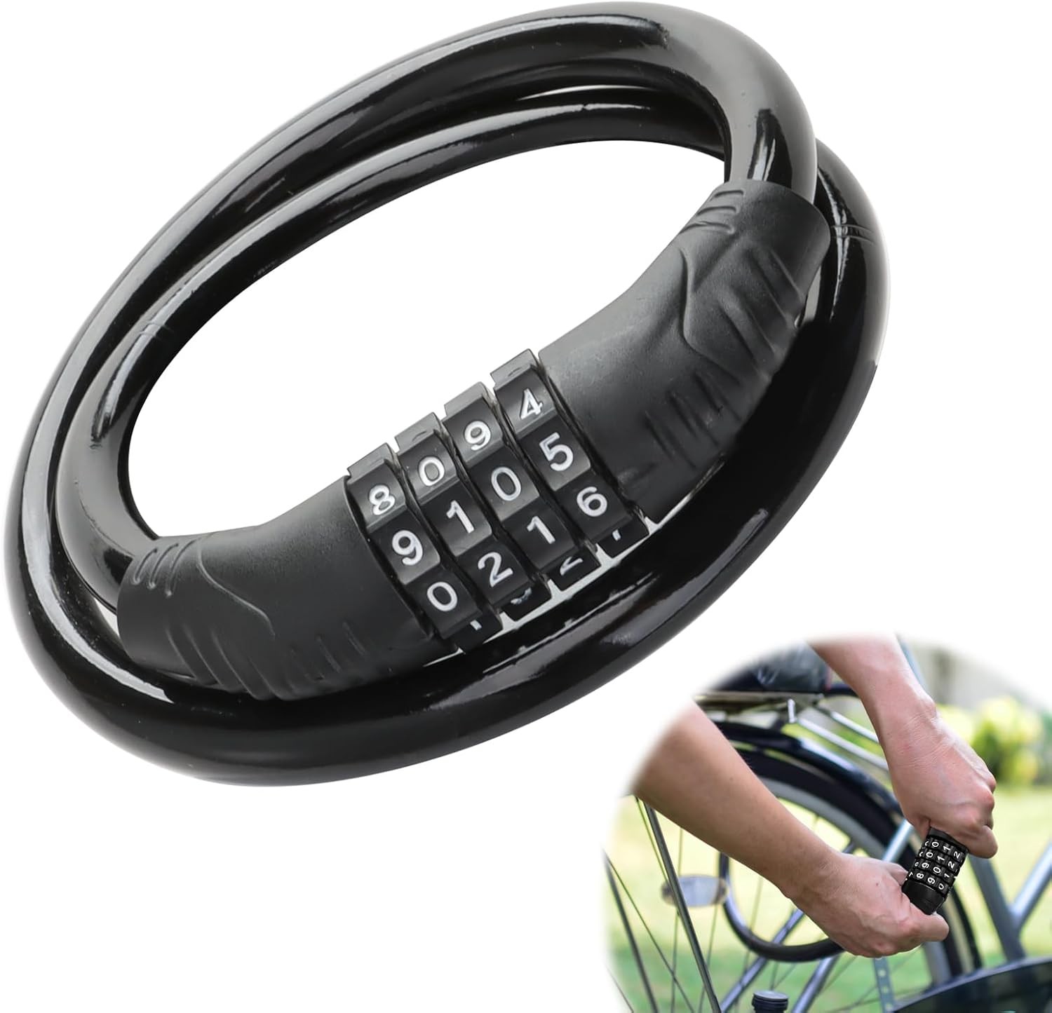 Bike Lock Anti-Theft, Bicycle Padlock with 4 Digits Long Cable Chain, Electric