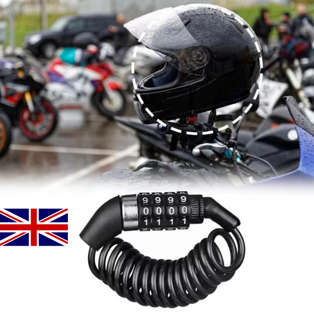Bike Security Wire Chain Padlock Wheel Helmet Combination Lock With 2 Keys AEs
