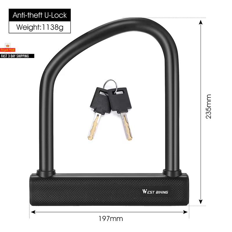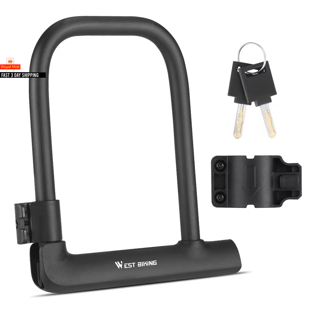 WEST BIKING MTB Road Bike Motorcycle U Lock Heavy Duty Anti-Theft E-Bike Padlock