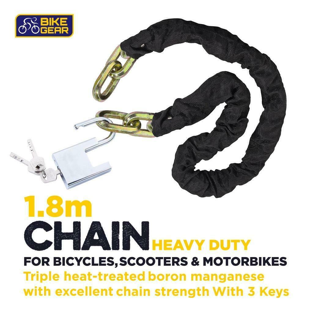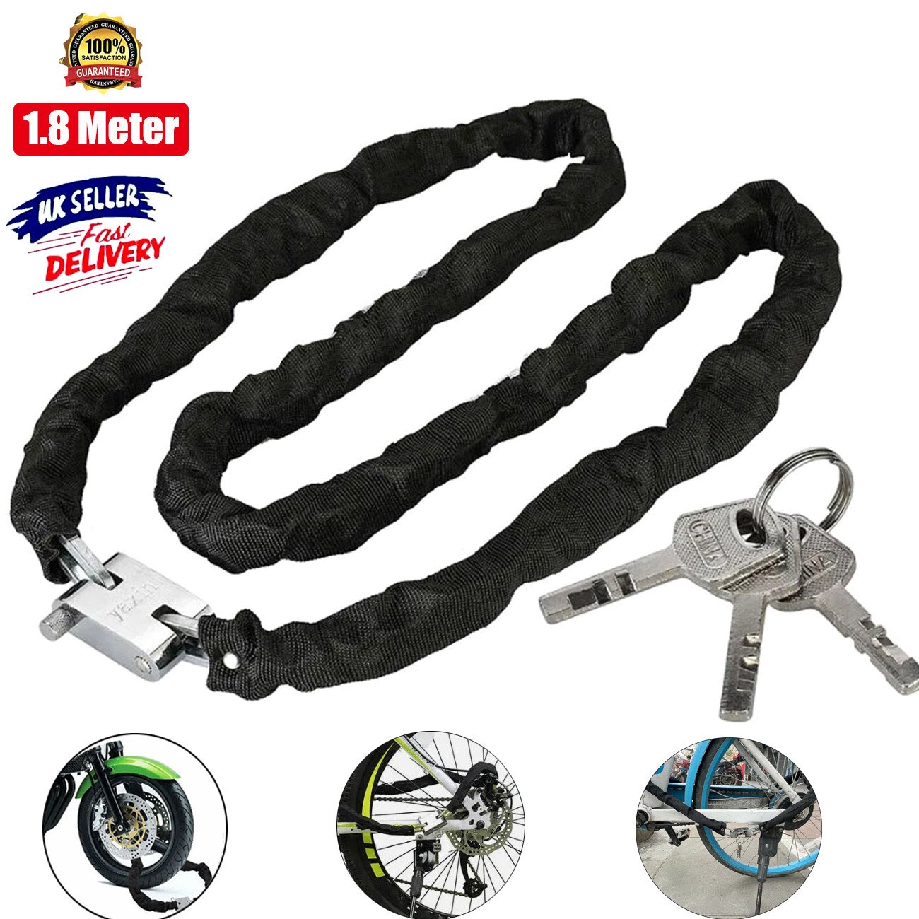 Bike Chain Lock 1.8M Heavy Duty Padlock Motorbike Bicycle Security with 3 Keys