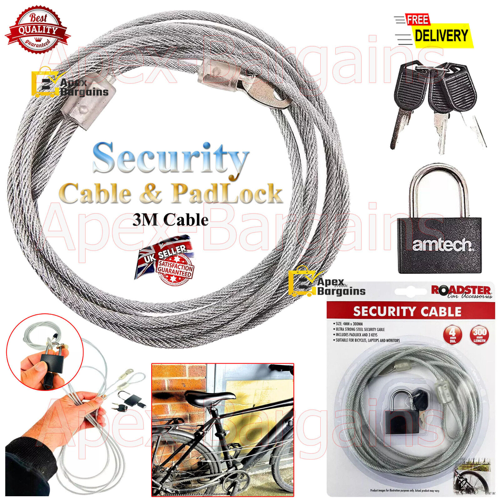 BIKE CABLE PADLOCK Vinyl Coated 3M Steel Security Lock Door Secure Wire Tie Down