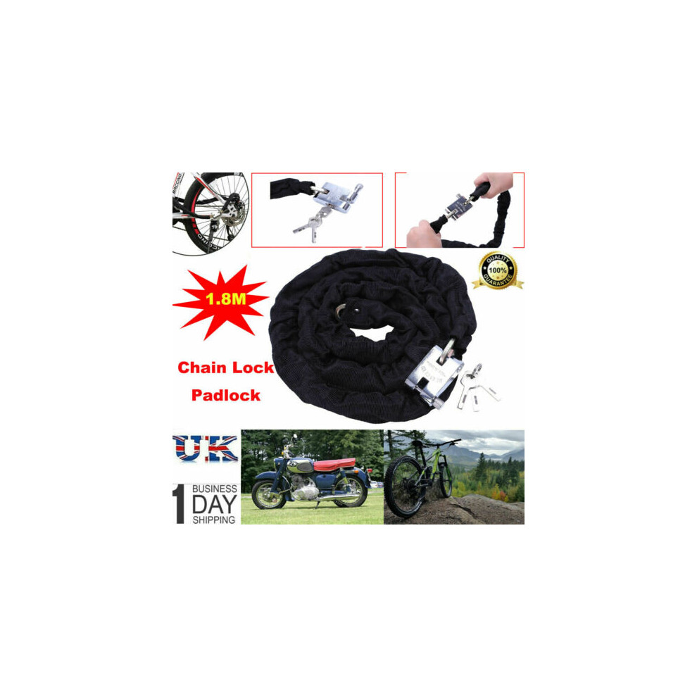 1.8M Heavy Duty Chain Lock Bike Bicycle Security Padlock Motorbike