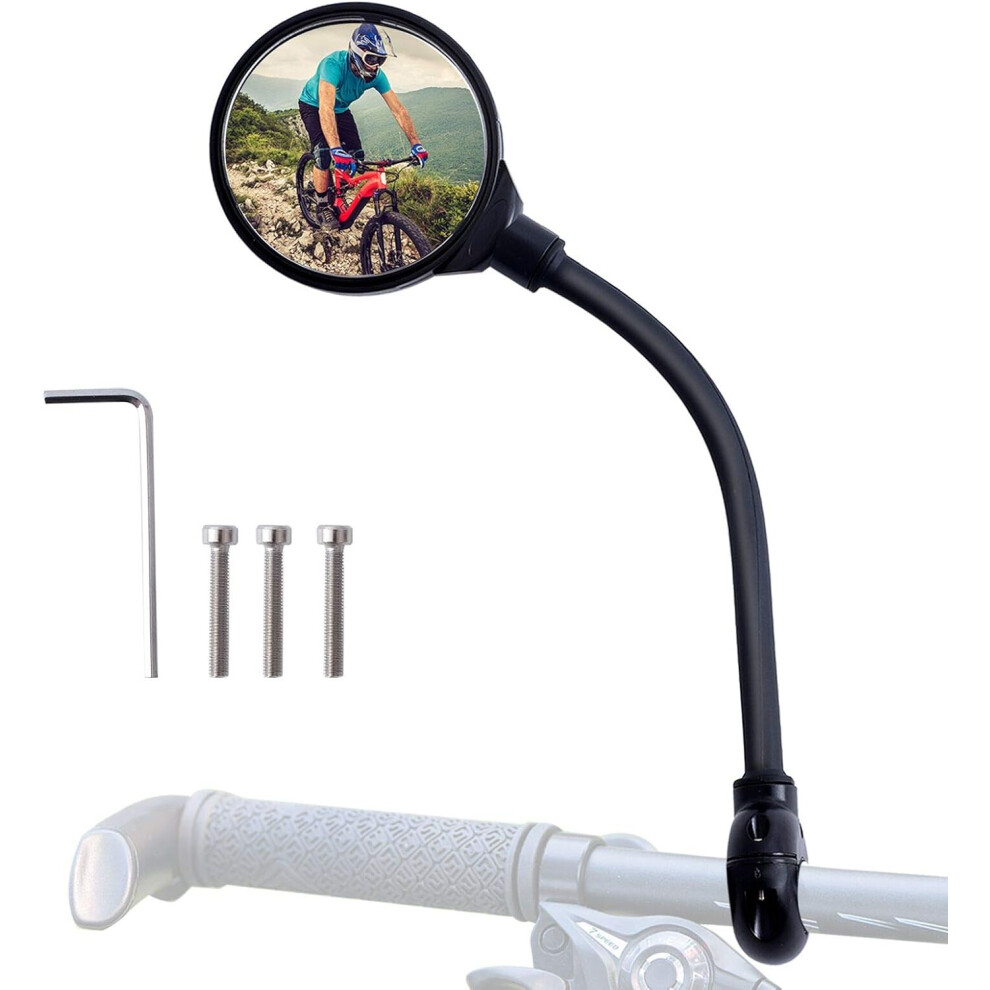 Rotatable Bike Mirrors, Adjustable Handlebar Mount with Acrylic Convex Mirror, Universal Fit for E-bike Road Bike Mountain Electric Bicycle, Flexible