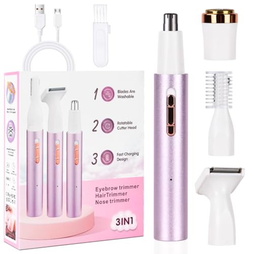 ACWOO Electric Lady Shaver for Women, Bikini Trimmer Women 4-in-1 Wet and Dry, Rechargeable Nose Hair Trimmer, Advanced Pain-Free Electric Razor for Face Legs Underarm Nose and Eyebrow