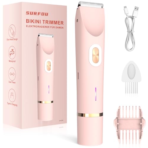 SURFOU Lady Shavers for Women, 2-in-1 Electric Bikini Trimmer and Facial Hair Remover, Cordless, Wet & Dry, USB-C Rechargeable, Dual Head, for Legs, Underarms & Sensitive Areas, IPX7 Waterproof