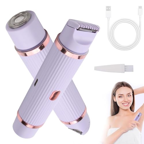 Lady Shavers for Women, 2-in-1 Bikini Trimmer Waterproof Wet & Dry Electric Razors Rechargeable Double Headed Hair Remover for Face Legs Underarms Pubic Hair(Purple)