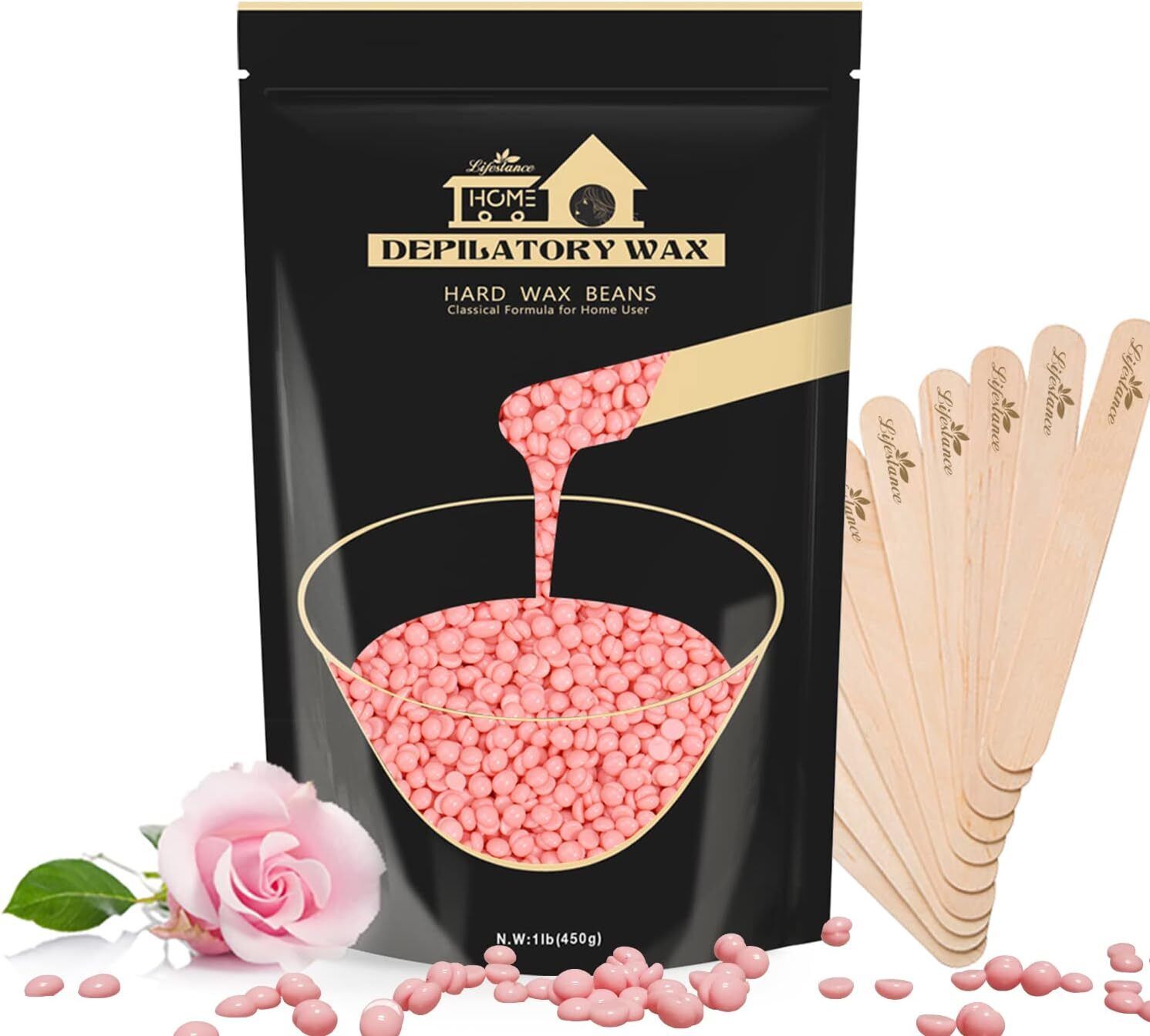 Lifestance Waxing Beads, 450g Rose Hard Wax Beads, Brazilian Bikini Wax with 10