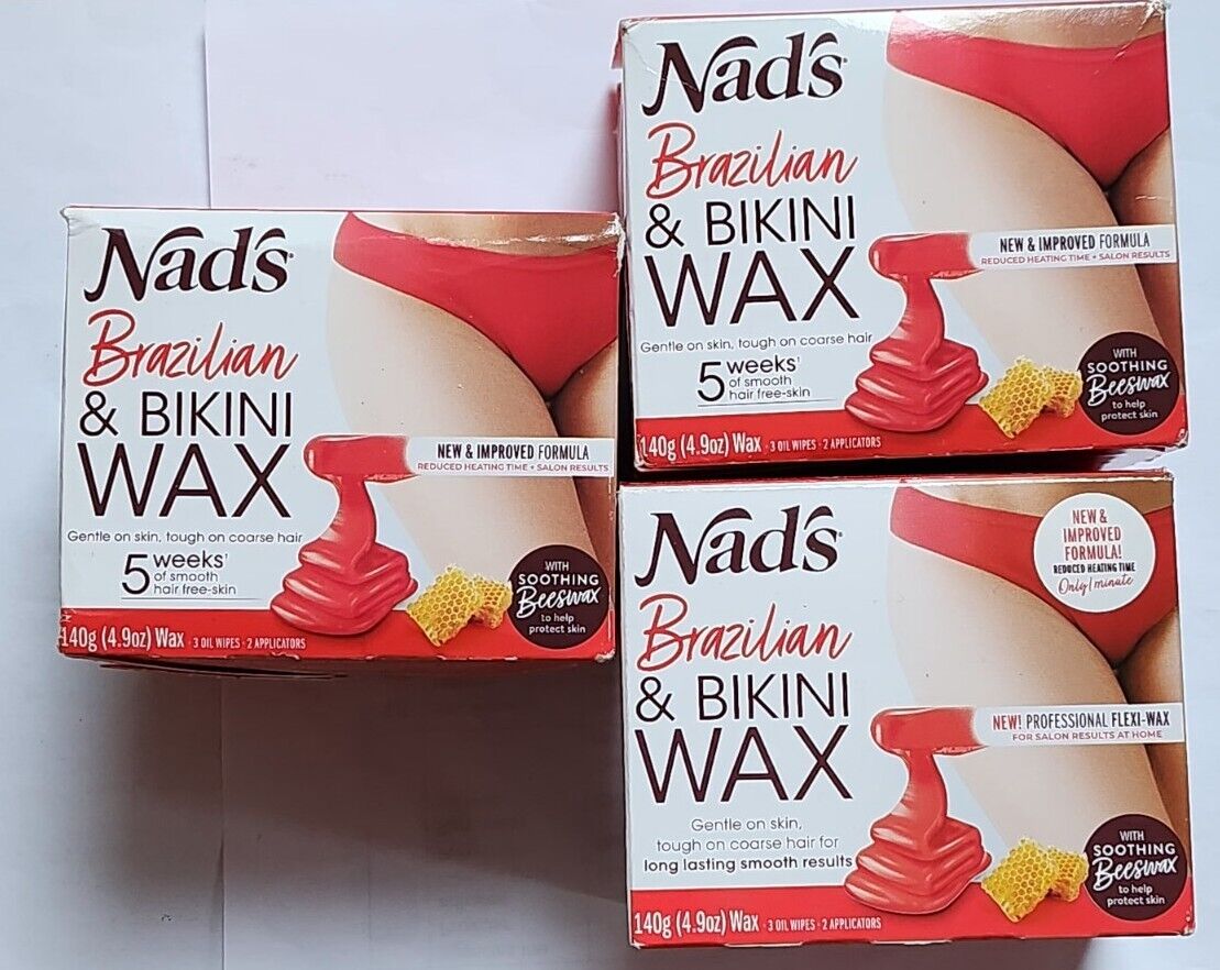 3x Nad's Brazilian & Bikini Wax Kit, Strip Free Hard Wax, Intimate Waxing Kit