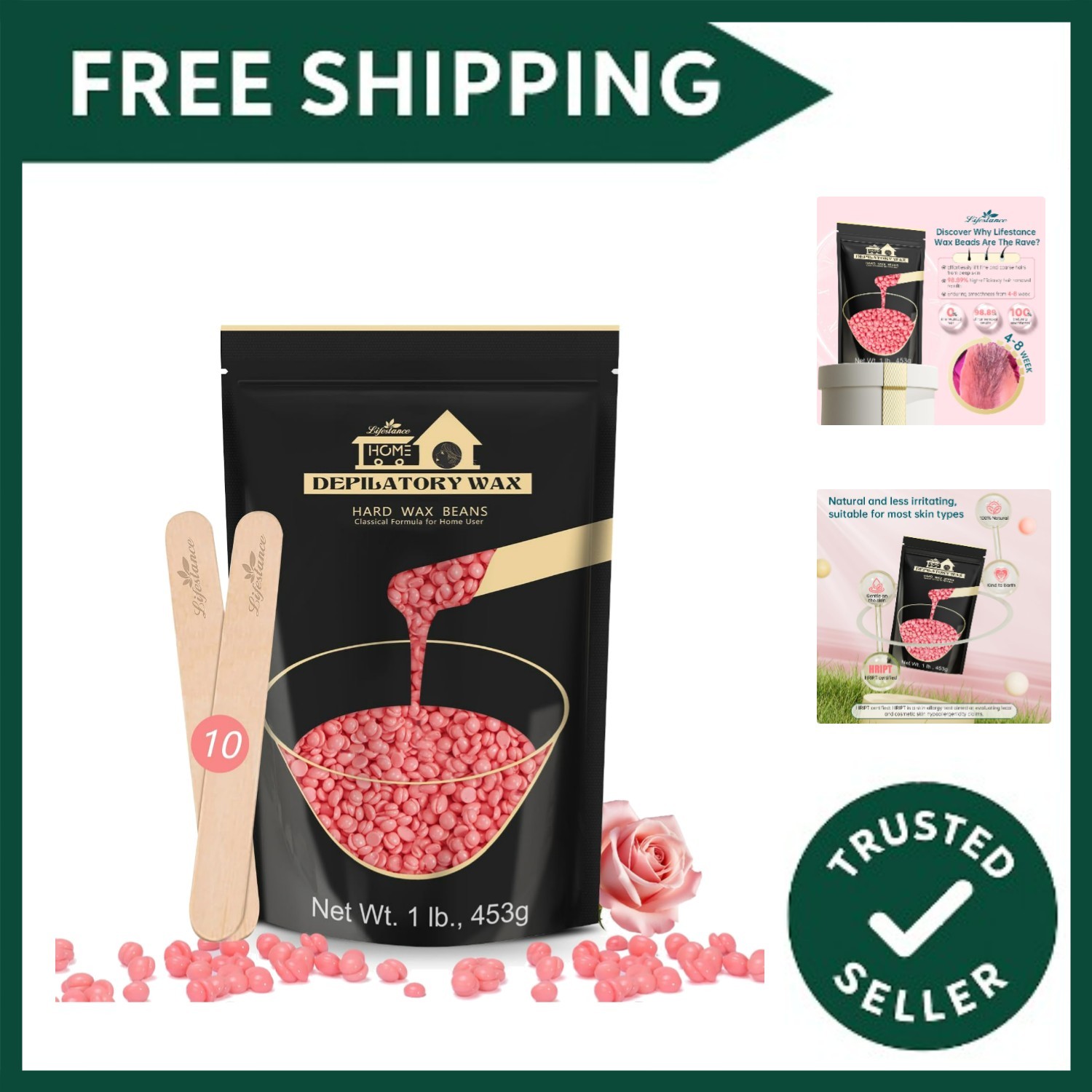 Lifestance Waxing Beads, 450g Rose Hard Wax Beads, Brazilian Bikini Wax with 10 Applicators, Stripless Wax Beads for Face, Upper Lip, Legs, Eye Brow for Fine Hair Removal.