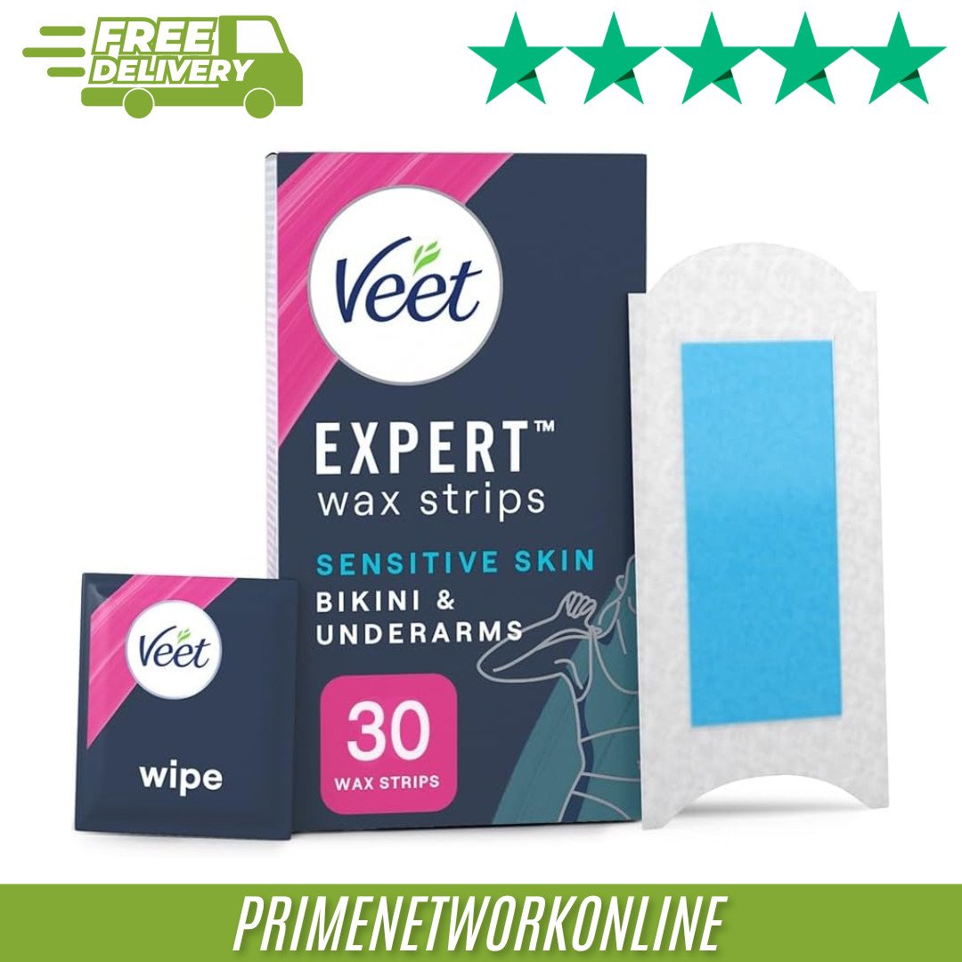 Veet Bikini & Underarms 30 Wax Strips + 3 Argan Oil Wipes 100% ORIGINAL ⭐⭐⭐⭐⭐