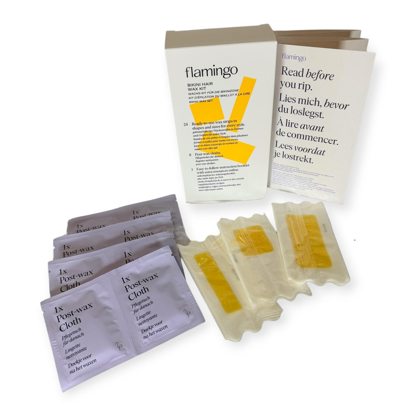 Flamingo Bikini Hair Wax Kit 24 Strips + 8 Post Wax Cloths Sensitive Skin