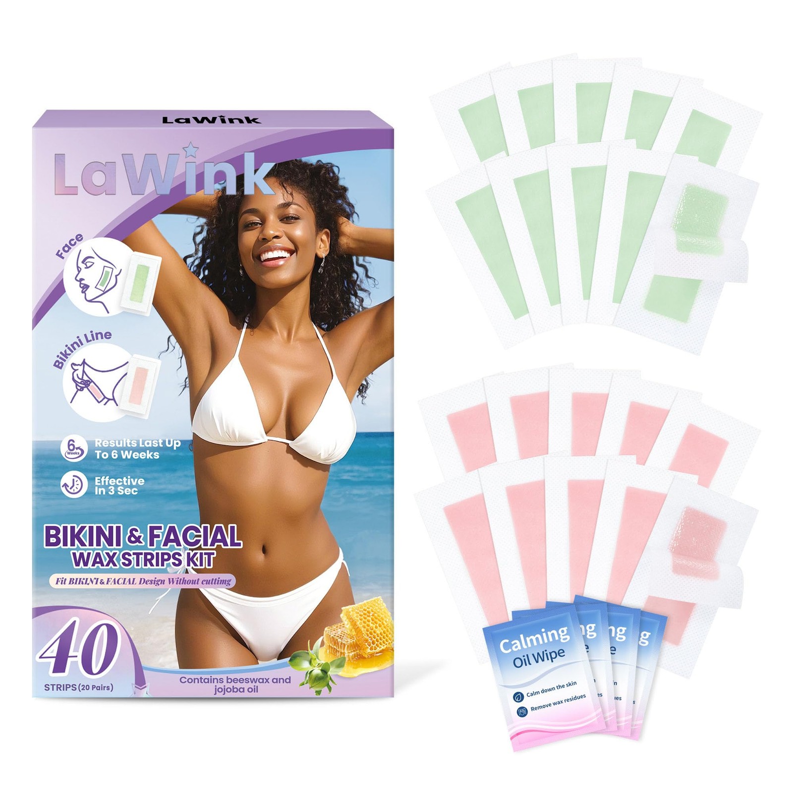 LaWink Eyebrow Facial Lips and Bikini Wax Strips, 40 1 count (Pack of 40)