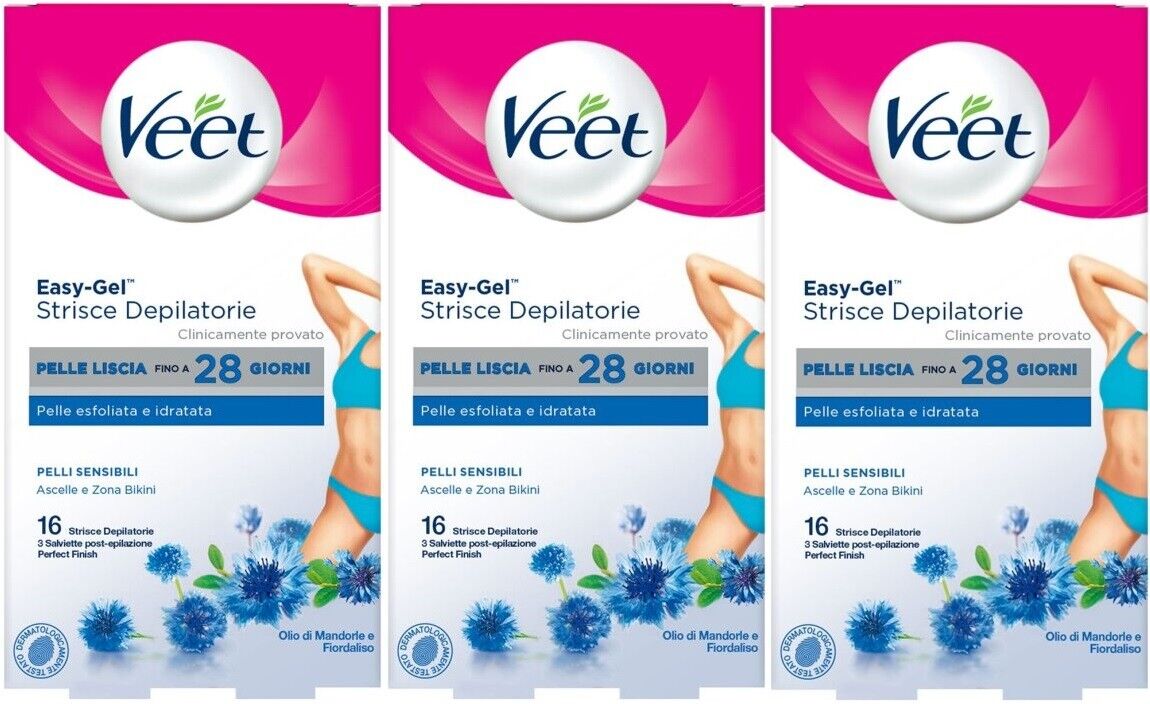 3x Veet Sensitive Skin Bikini & Underarm Cold Wax Strips - 16 Count (Exp 04/24)