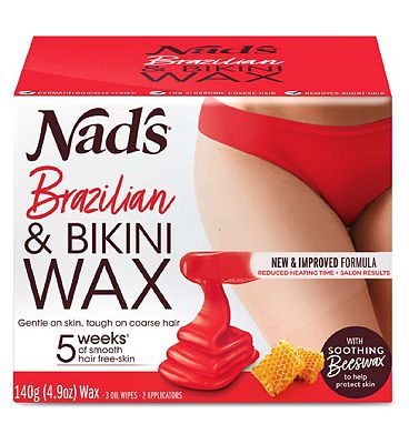 Nad's Brazilian & Bikini Wax Kit, Strip Free Hard Wax, Intimate Waxing Kit, Includes 3 Wooden Spatulas, 3 x Oil Wipes & Hot Wax 140g