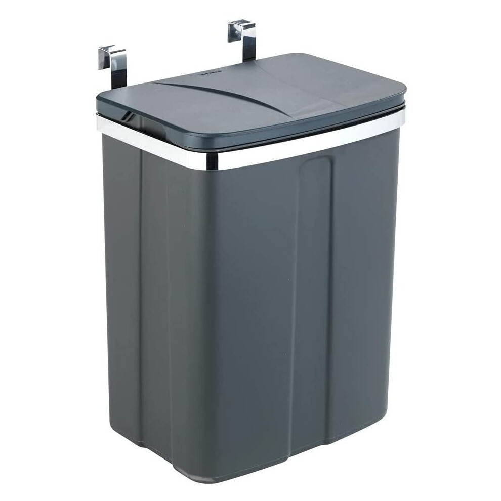 Top Chromed Steel Bin for Kitchen Cupboard, Over Door Bin 10L, Kitchen Storage Organizer, Hanging Waste Basket