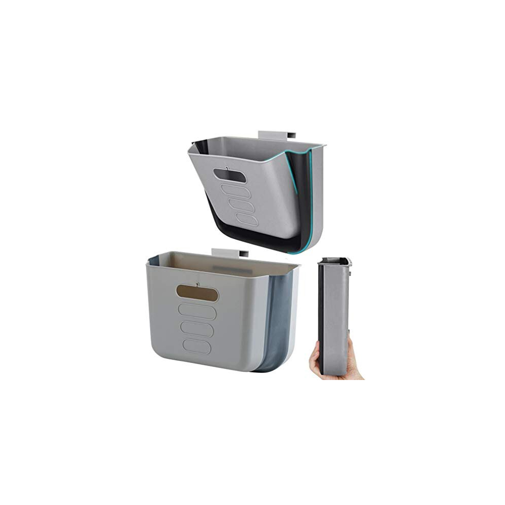 Hanging Kitchen Waste Bin Small Trash Can Foldable Plastic Dustbin Portable Cabinet Rubbish Bin Wall Mounted Garbage Trash Bin for Kitchen Cupboard Door Bathroom Bedroom Office Car Dorm (Grey)