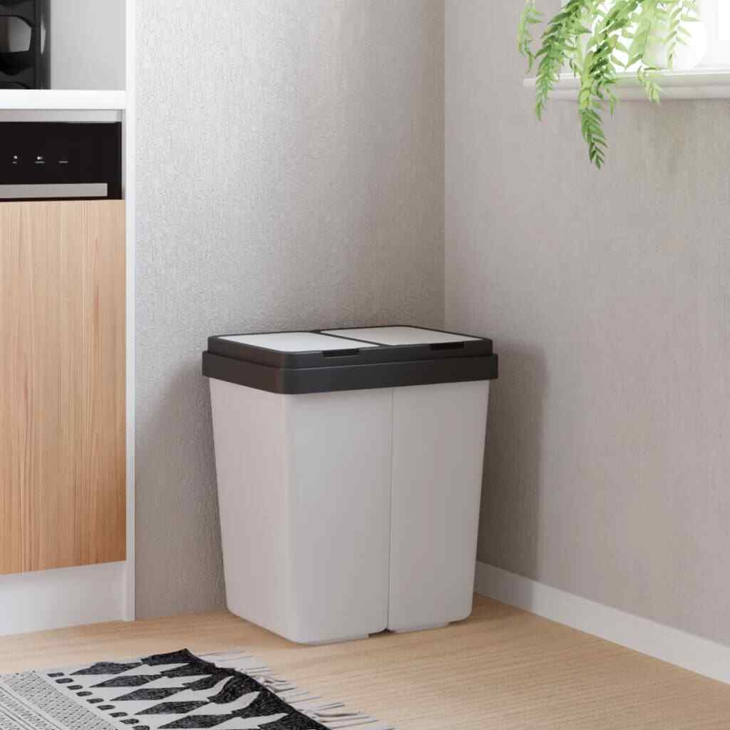 Jolie Max Double Rubbish Waste Separation Bin Recycling. Dual Compartment 100L (2 x 50 L) (Black-Grey)
