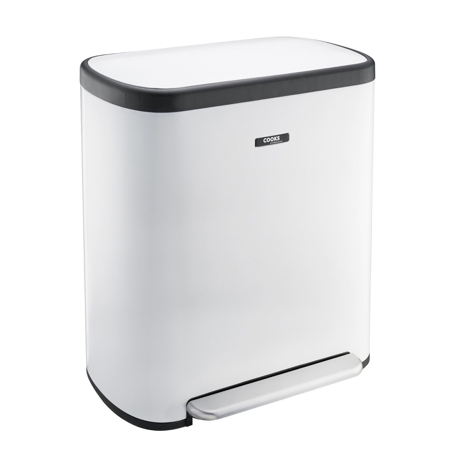 Slimline Recycling Pedal Bin 50L Dual Compartment Kitchen Rubbish Dustbin White