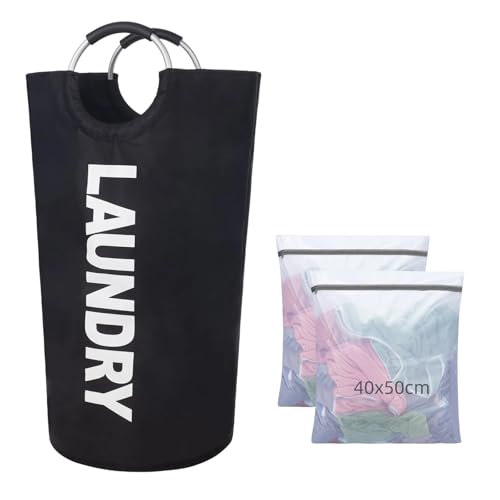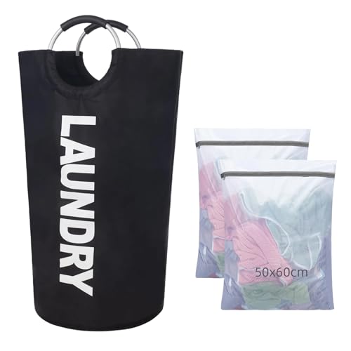 Laundry Bags Set with 2 Mesh Laundry Wash Bags (50x60cm) & 1 Large Collapsible Laundry Basket(90L),Laundry Wash Bags with Zips,Waterproof&Foldable Washing Bin for Laundry Room,Bathroom,Bedroom,Dorm