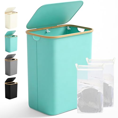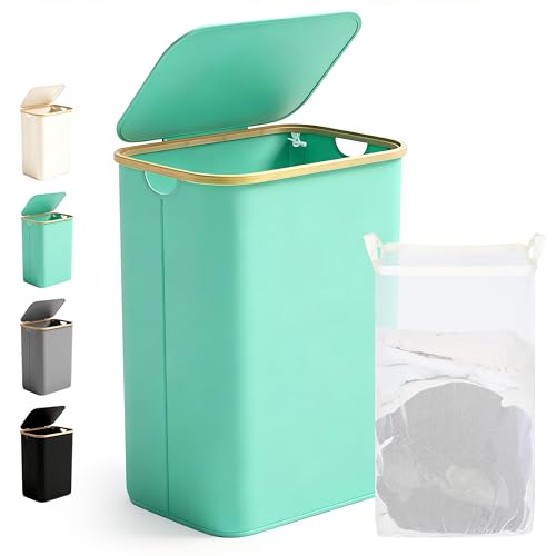 Ribelli Laundry Basket, 85 Litres, Foldable Laundry Hamper with Lid and Removable Laundry Bag, Narrow Laundry Bin for Laundry Room, Bathroom, Bedroom, Green