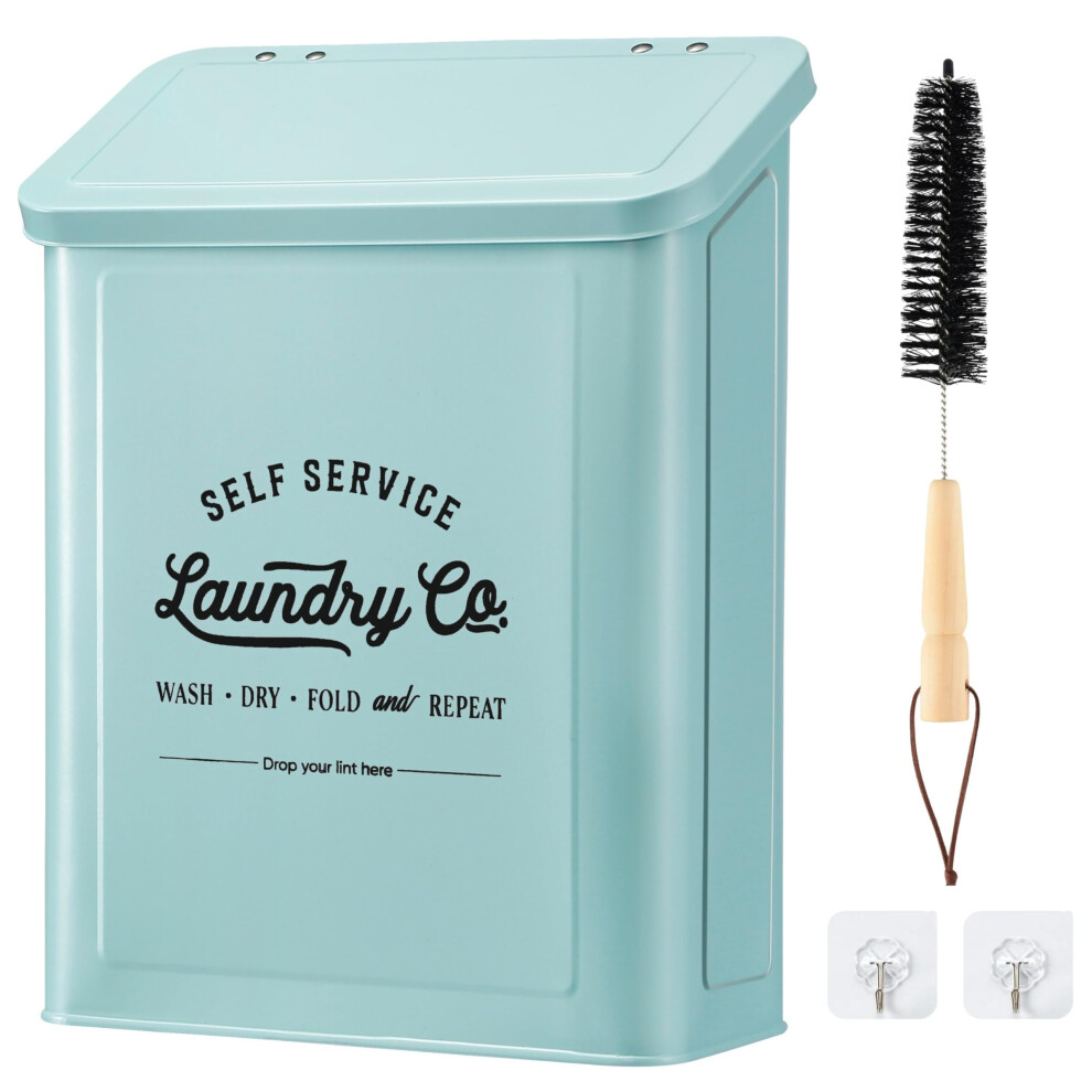 MONJITA Magnetic Lint Bin for Laundry Room Wall Mounted Lint Trash can with lid for Dryer Farmhouse Laundry Co Sign Laundry Room Organization