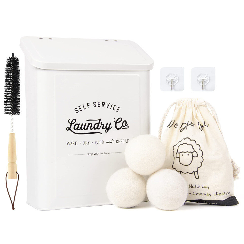MONJITA Magnetic Lint Bin for Laundry Room Metal Trash Can with Lid for Dryer Farmhouse Lint Holder Laundry Co Sign Laundry Room Storage Deco