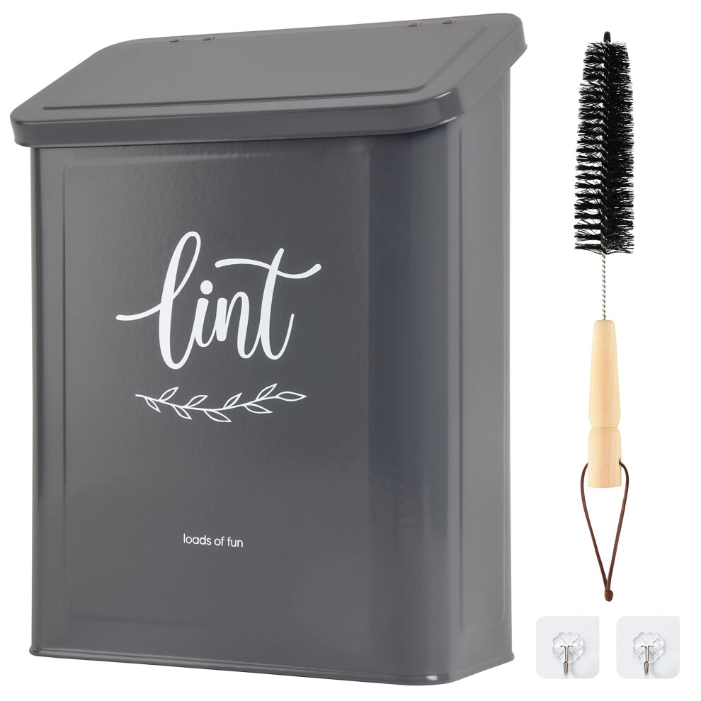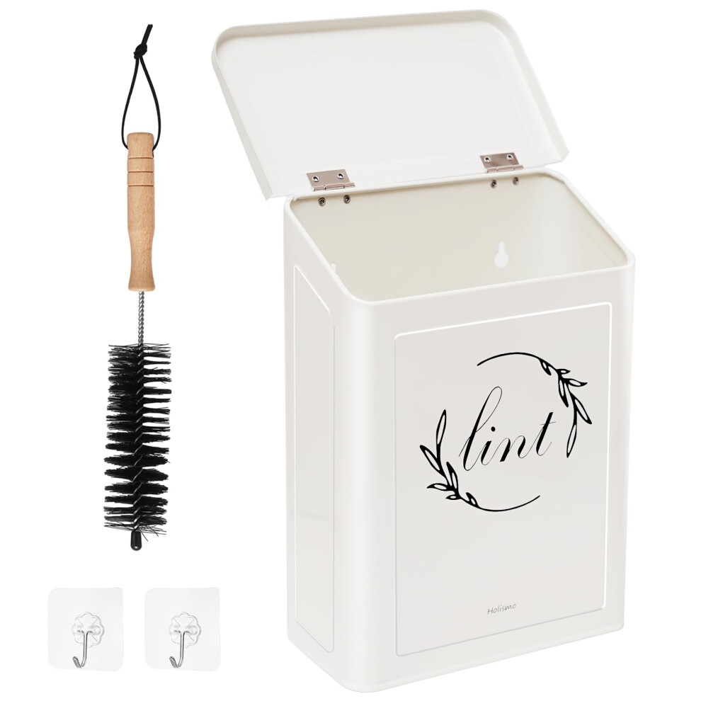 Holismo Magnetic Lint Bin for Laundry Room Metal Lint Trash Can with Lid for Dryer Wall Mounted Lint Holder Box with Lint Brush Modern Farmhouse La
