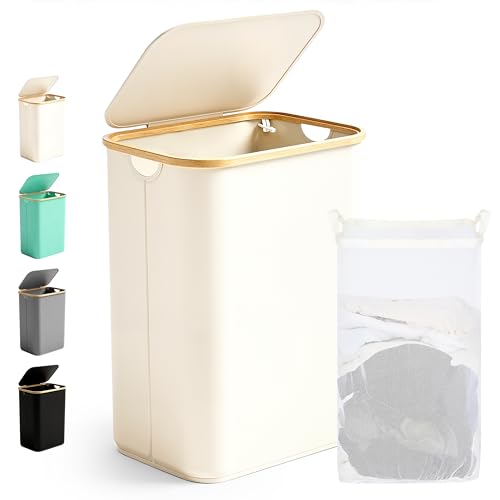 Ribelli Laundry Basket 85 Litres, Foldable Laundry Hamper with Lid and Removable Laundry Bag, Laundry Bin Narrow for Laundry Room, Bathroom, Bedroom, Cream