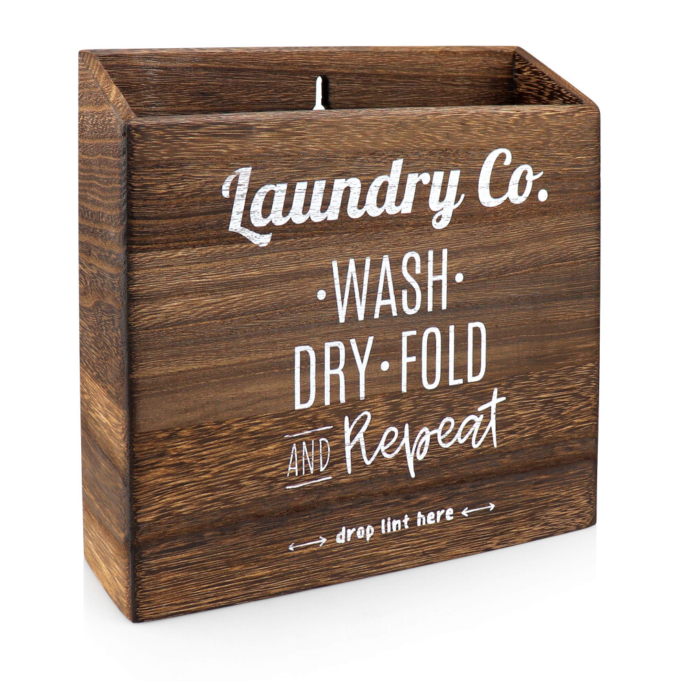 Magnetic Lint Bin for Laundry Room - Mountable Wooden Lint Box/Holder/Trash Can or Organization and Storage Bin for Washer and Dryer Supplies -