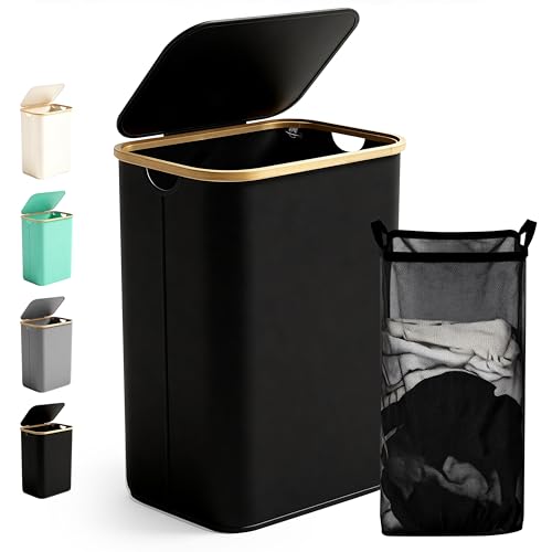 Ribelli Laundry Basket 85 Litres, Foldable Laundry Hamper with Lid and Removable Laundry Bag, Laundry Bin Slim for Laundry Room, Bathroom, Bedroom, Black