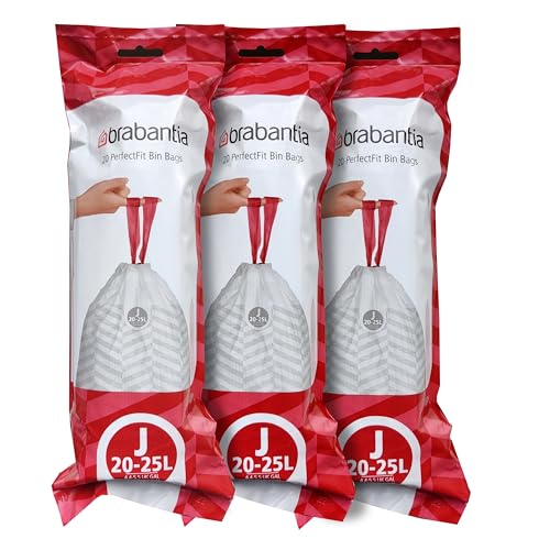 Brabantia IdealFit Bin Liners (Size Y/20 Litre) Ideal Quality Thick Plastic Trash Bags with Tie Tape Drawstring Handles (40 Bags)