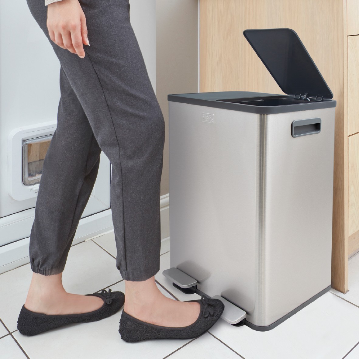 BLACK+DECKER 40 Litre Slimline Pedal Bin with Soft Close Lid, Stainless Steel
