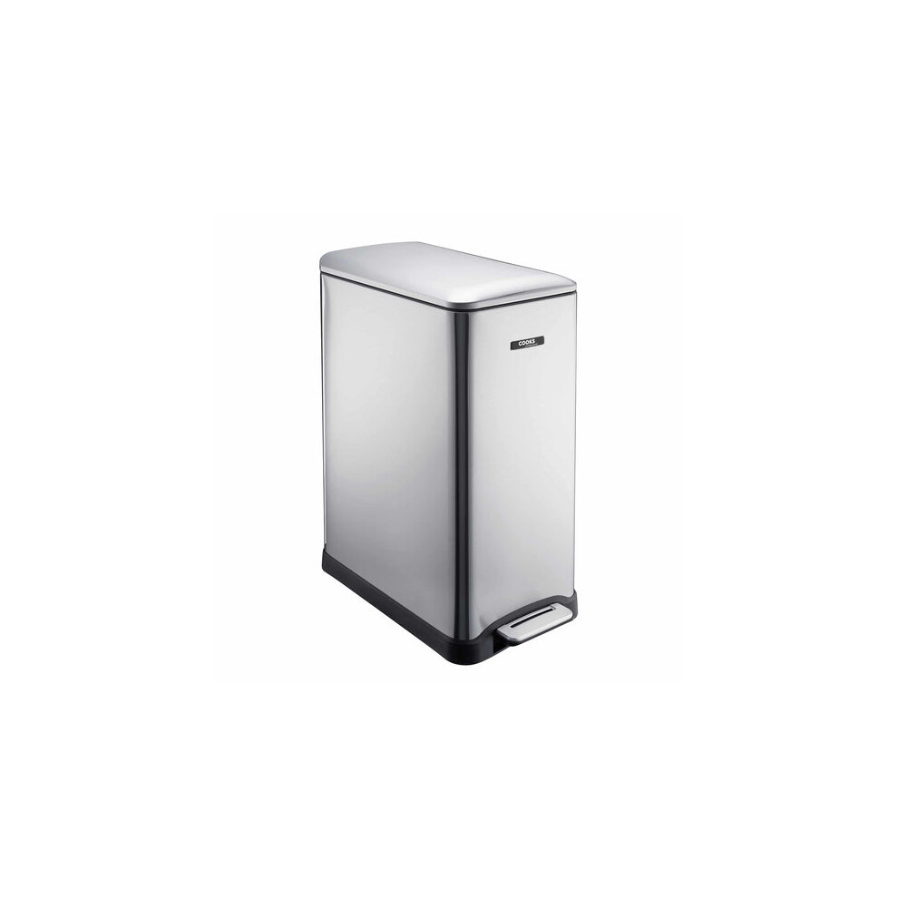 Cooks Professional Slimline Dual Recycle Pedal Bin 50L | 20 + 30L Removable Compartments & Soft Close Lid | Double Section Stainless Steel Kitchen or Office Dustbin for Recycling or Waste | Silver