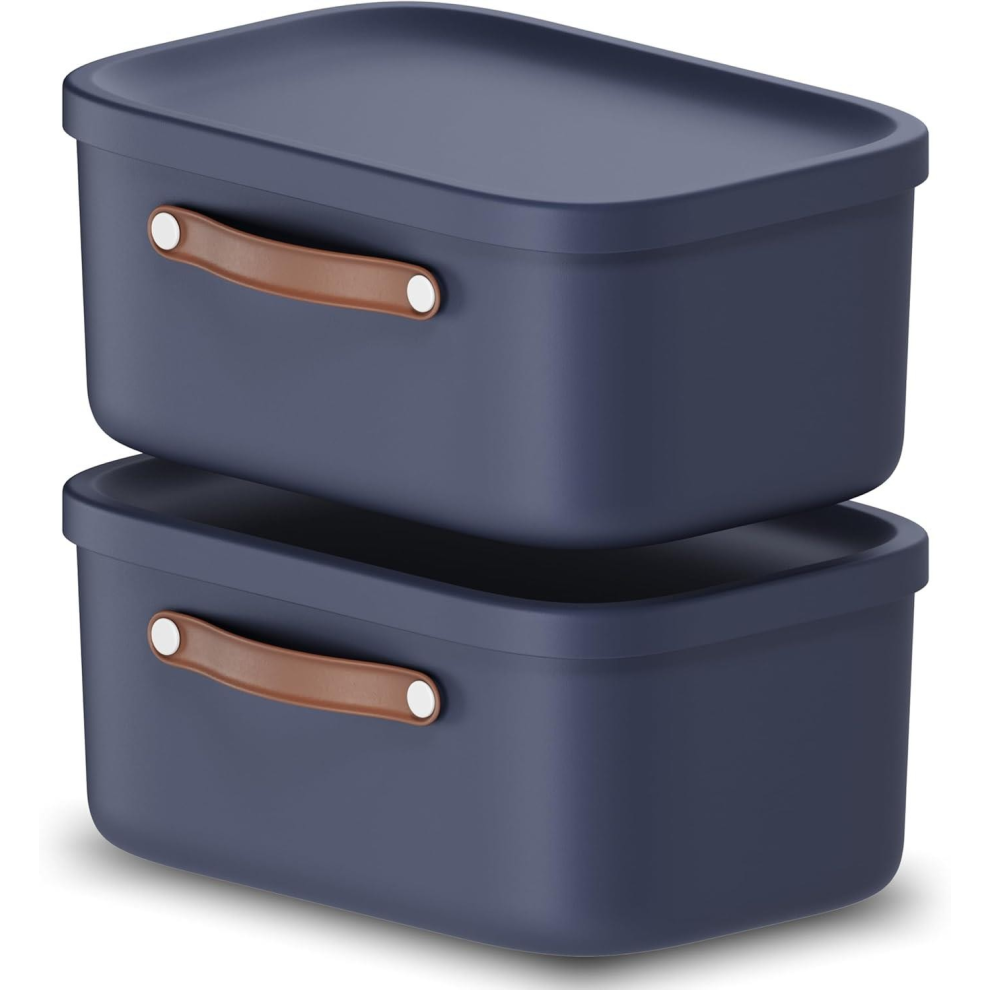 Storage box 12 L Rotho Maloja Plastic Storage Bin with Lid Blue 2 Pack