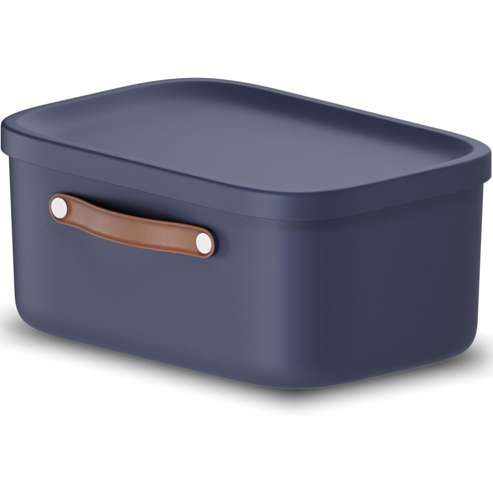 Storage box 12 L Rotho Maloja Plastic Storage Bin with Lid Blue 4 Pack