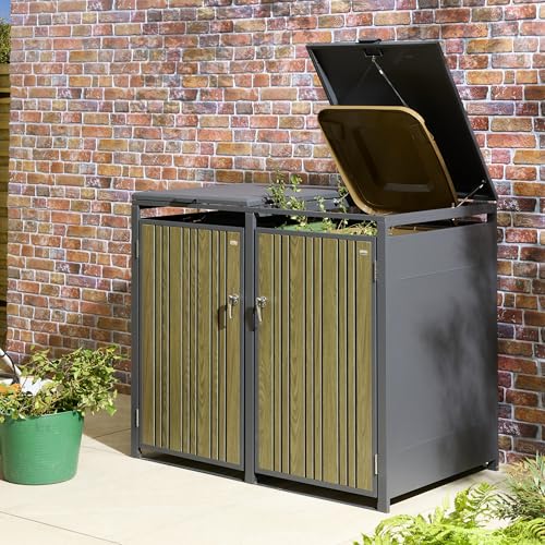 Rowlinson Apex Double Wheelie Bin Store, Attractive Design for Two Bins, none