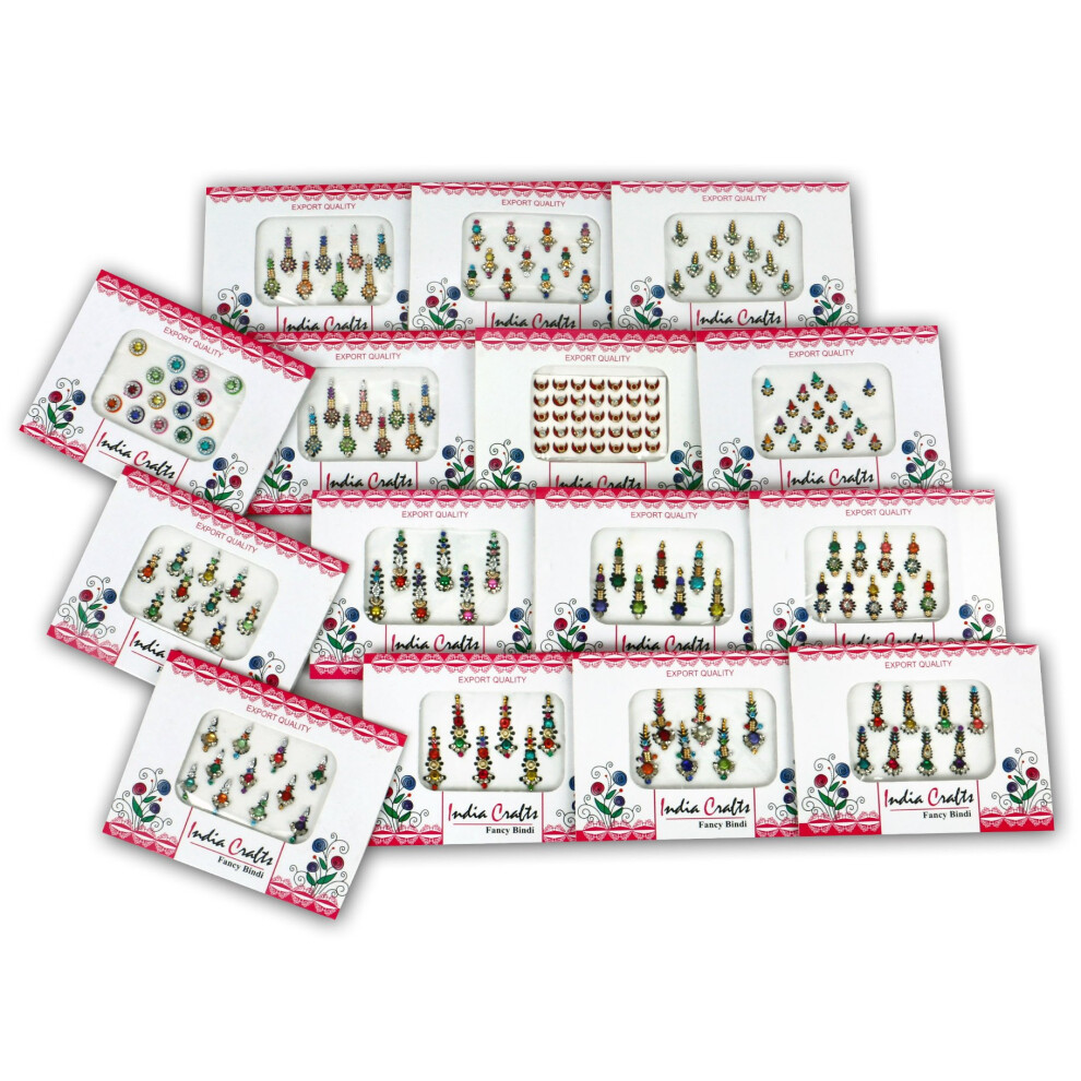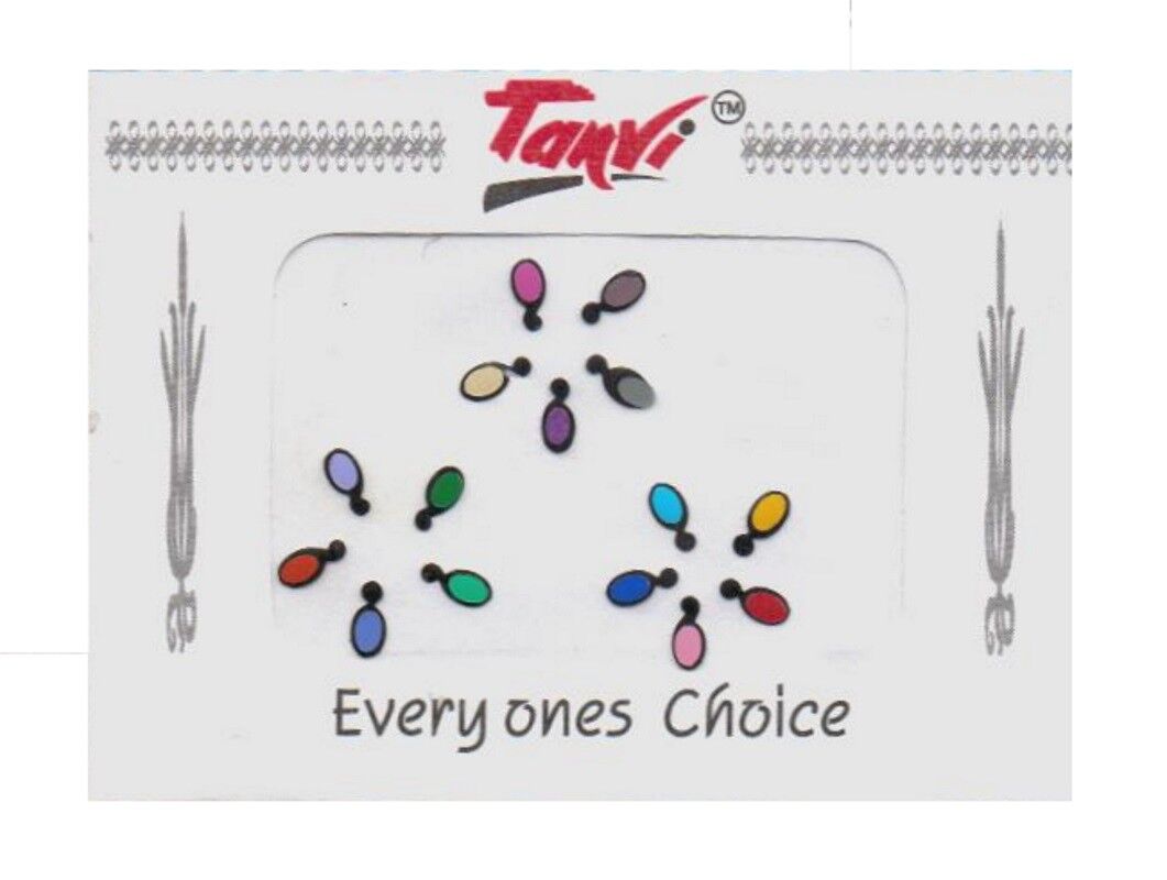 India Crafts 6 Packs 60 Multicolored long Bindis Forehead Tika Face Jewels