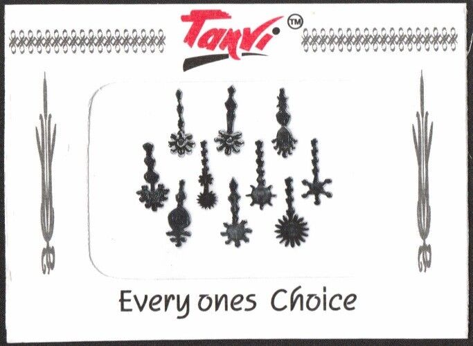 10 Bollywood Designer Bindis Premium Crystal Jewels Mettallic Bindi Stickers Tattoos Forehead Tika