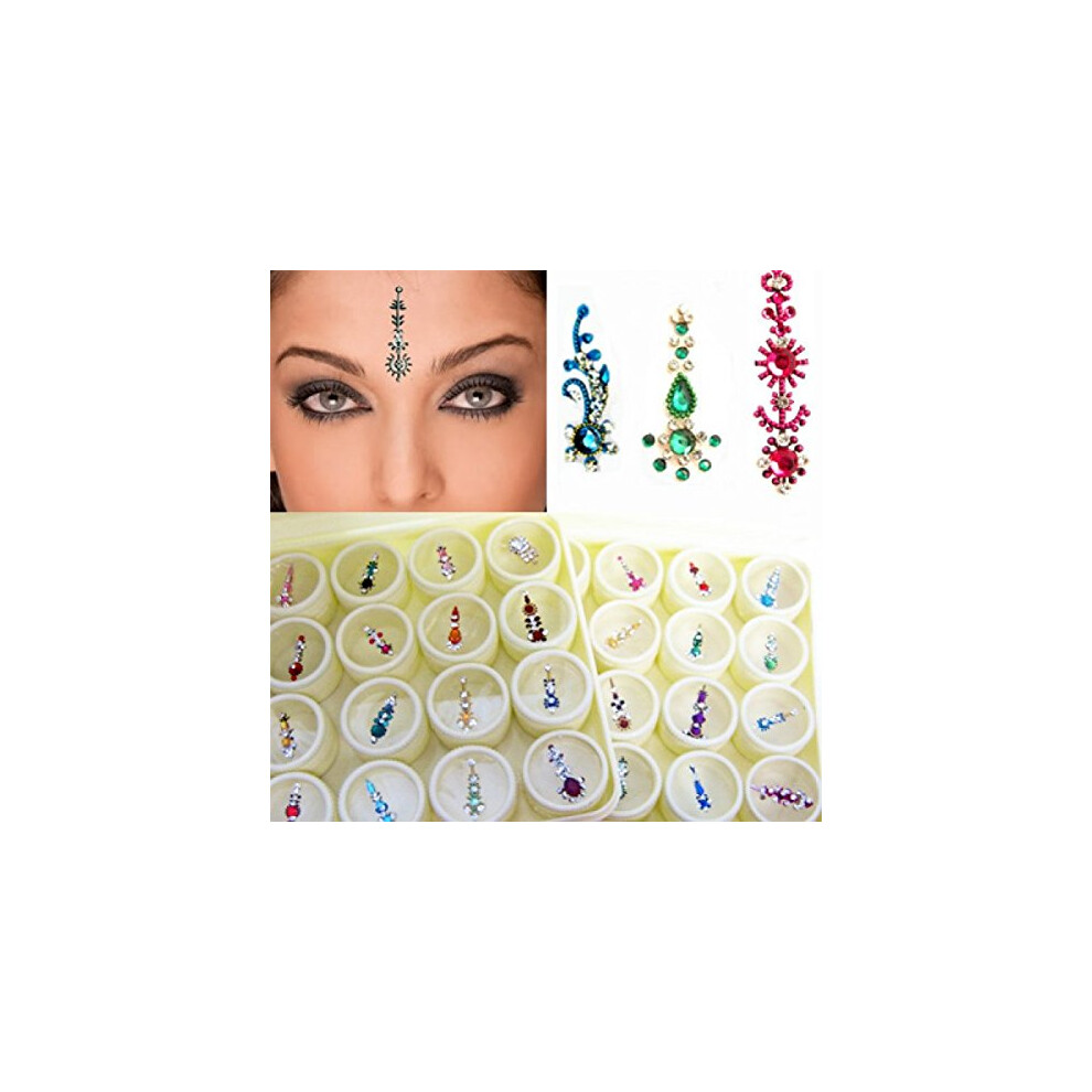 Bindi Box Long Multicolored Crystal Bindis Bridal face Jewels Forehead Tika Pack of 40 Bindis