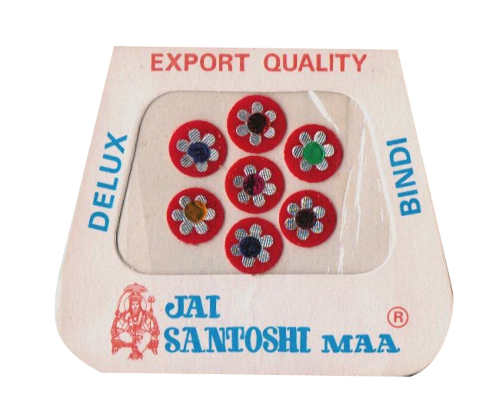 Red & Silver Colourful Round Flower Bindi's Indian Round Dot Velvet Bindi's 12mm