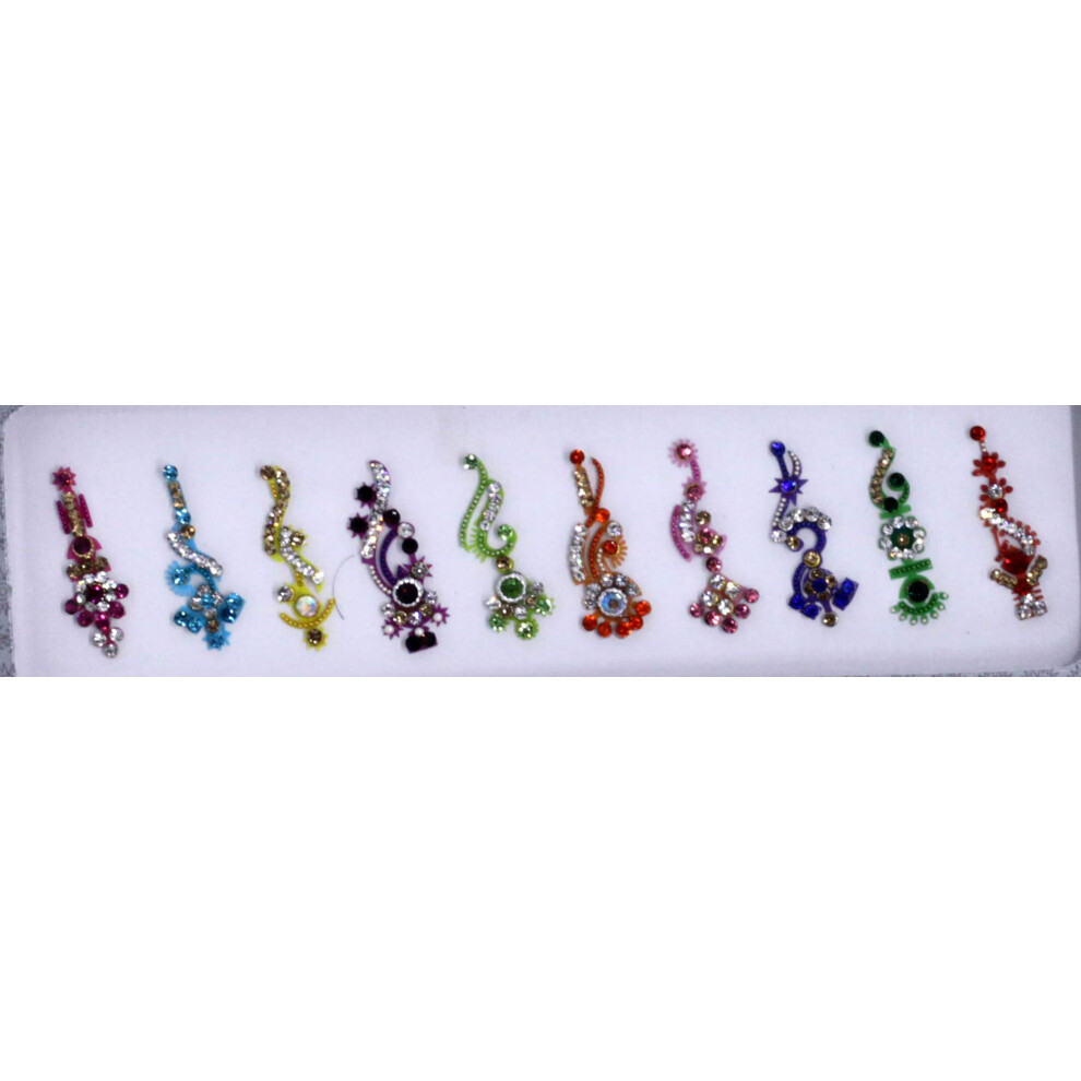 Multicoloured Snake Shaped Bindi's - Pack of 10pc � 12mm