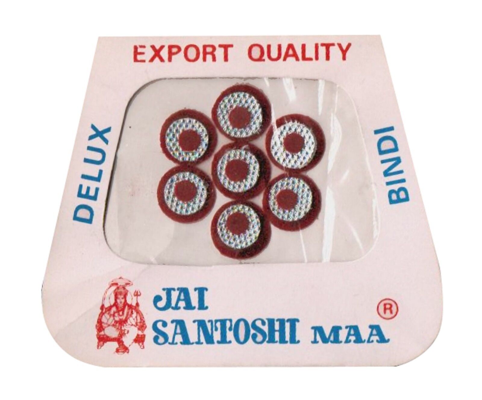 Maroon & Silver Round Bindi's Indian Maroon & Silver Round Dot Velvet Bindi 12mm