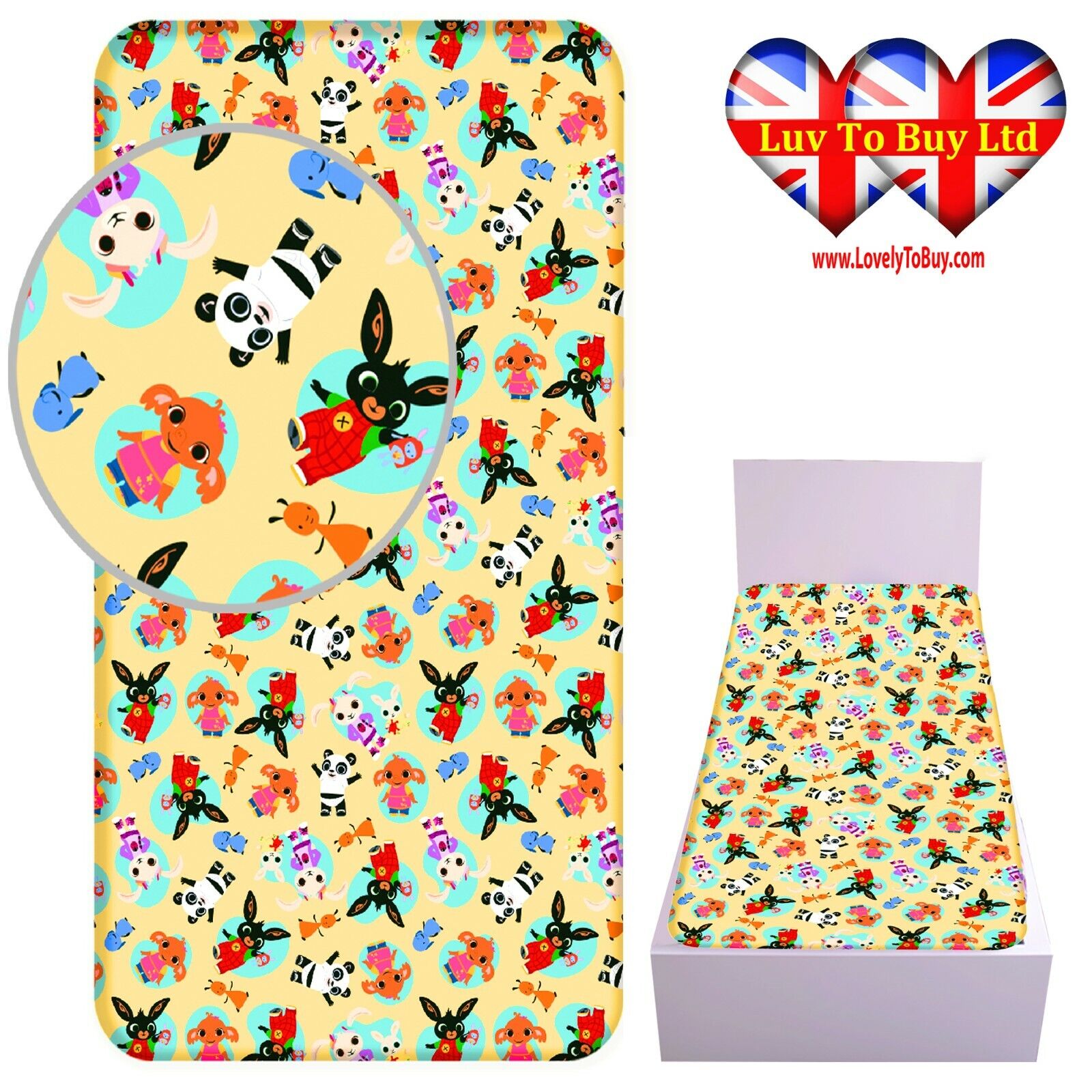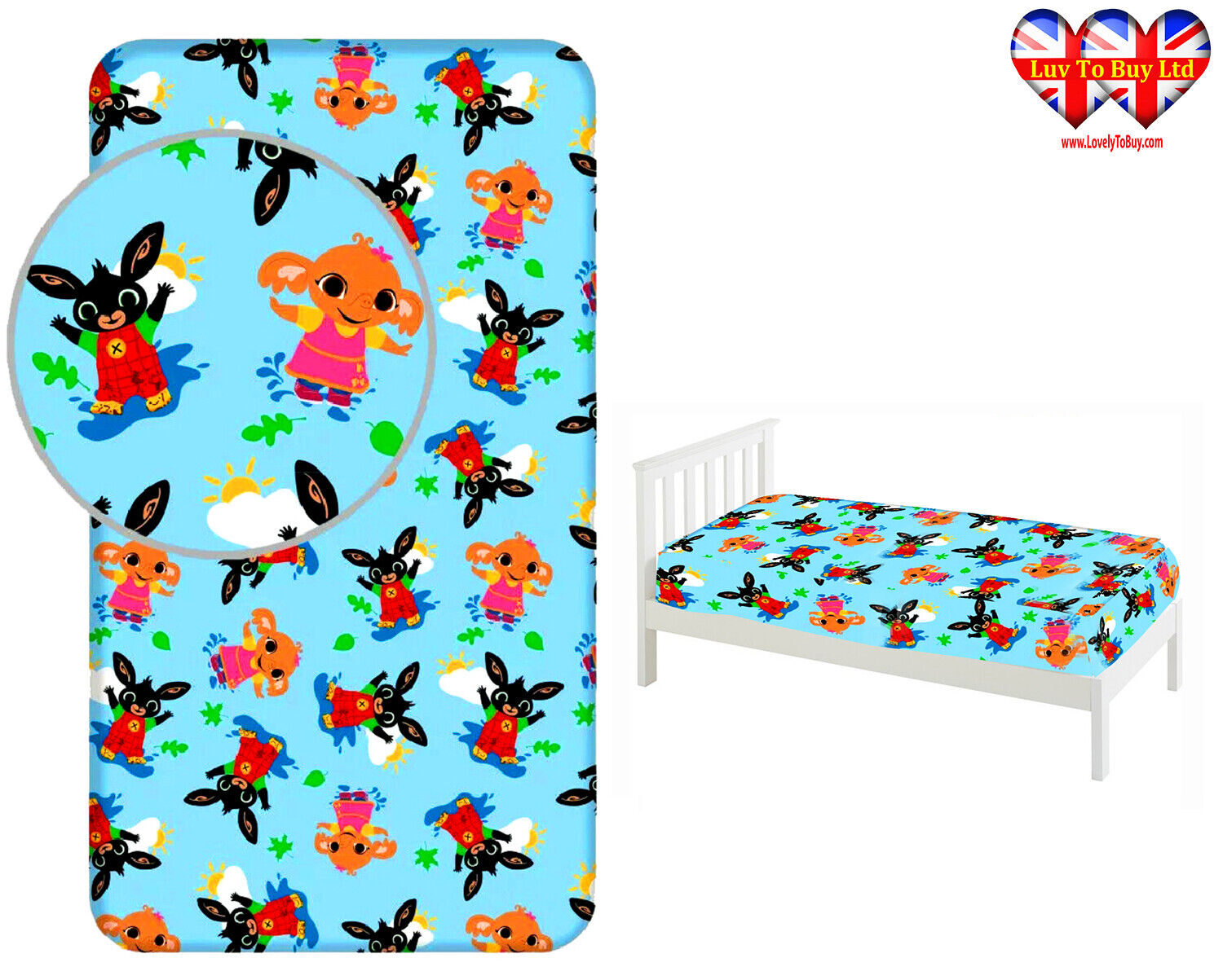 Fitted Sheet Bing Bunny Single Bed%100 Cotton, Official Licensed,(200x90x25cm)