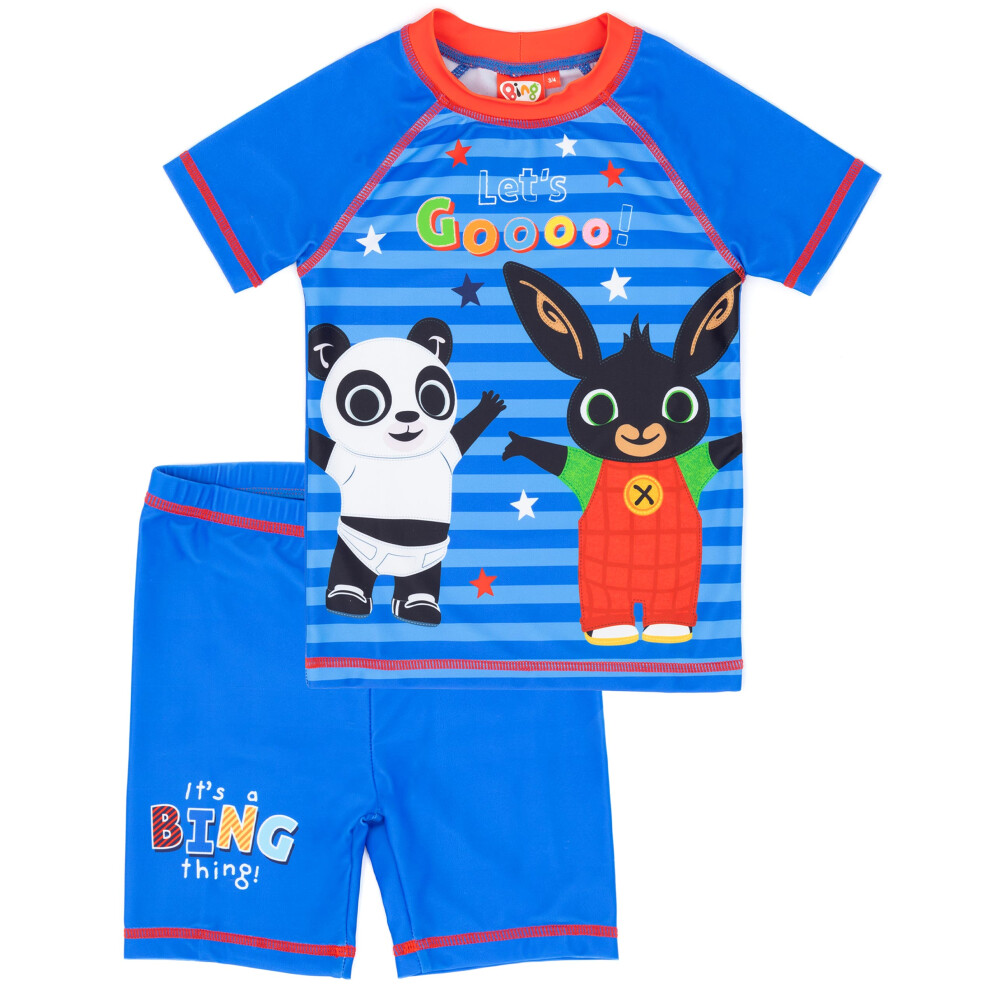 (3-4 Years, Blue/Red/Black) Bing Bunny Boys Pando Contrast Swim Set