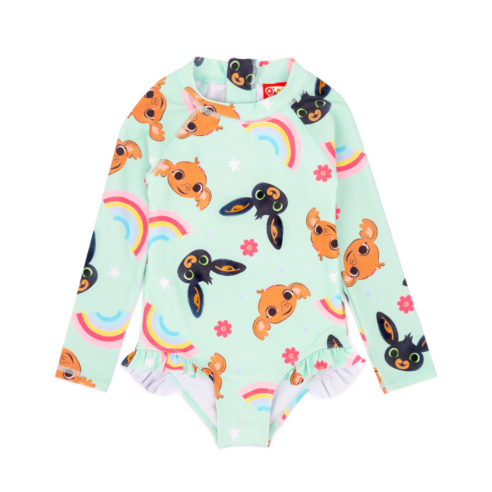 (3-4 Years, Green/Black/Brown) Bing Bunny Girls Sula Frill One Piece Swimsuit
